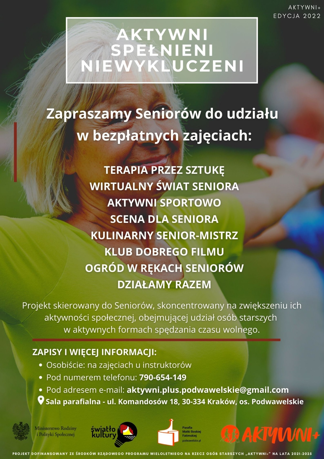 Od lutego 2022 r. do grudnia 2022 r. Stowarzyszenie prowadziło projekt pt. "Aktywni–Spełnieni–Niewykluczeni", realizowany w ramach rządowego programu dotacyjnego dla organizacji sektora pozarządowego, organizowanego przez Ministerstwo Rodziny i Polityki Społecznej, programu wieloletniego na rzecz Osób Starszych "Aktywni+" na lata 2021–2025. Projekt...