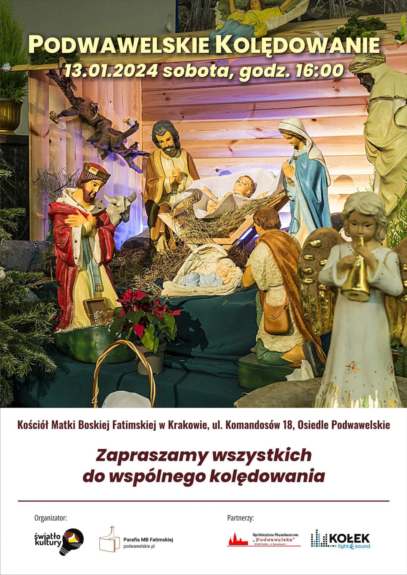 Podwawelskie Kolędowanie 2024 obyło się 13 stycznia w Kościele MB Fatimskiej w Krakowie.
