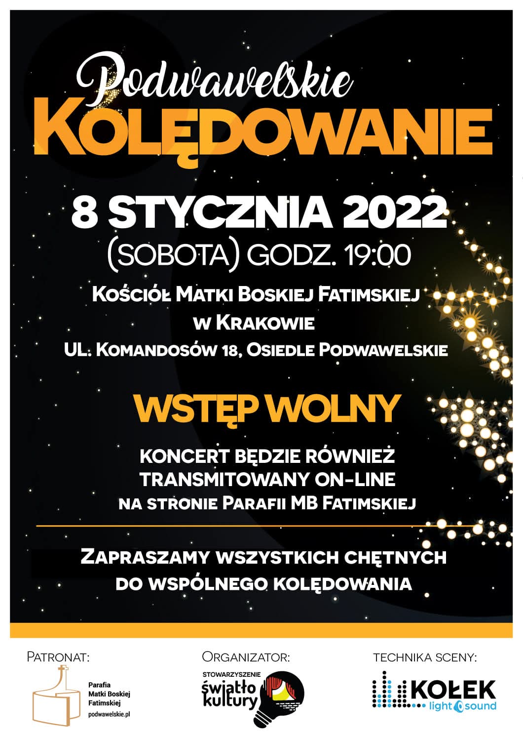 Podwawelskie Kolędowanie 2022 odbyło się 8 stycznia w Parafii MB Fatimskiej w Krakowie.